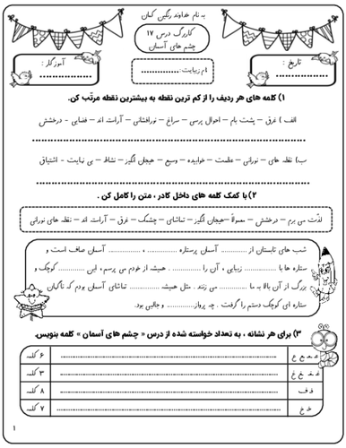 نمونه سوالات و آزمون ها و کاربرگ های پایه سوم دبستان