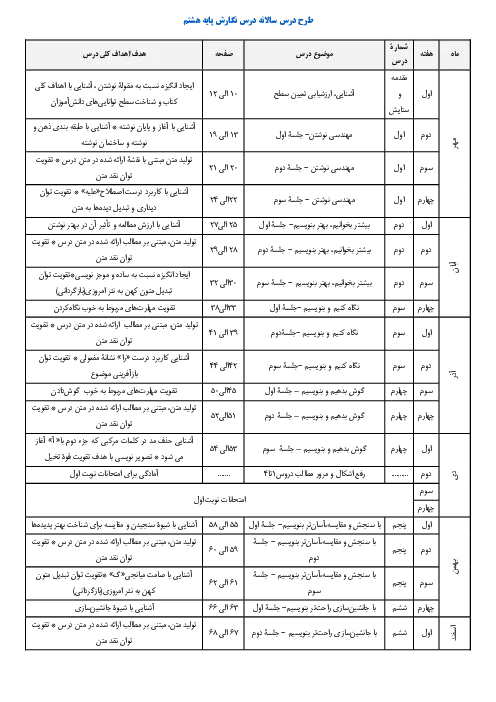 طرح درس سالانه نگارش هشتم