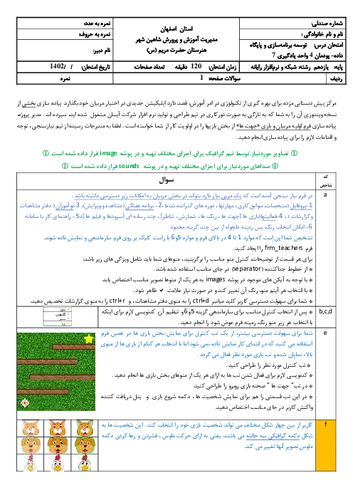 آزمون عملی درس توسعه برنامه سازی و پایگاه داده | پودمان 4 (واحد یادگیری 7) پایه یازدهم