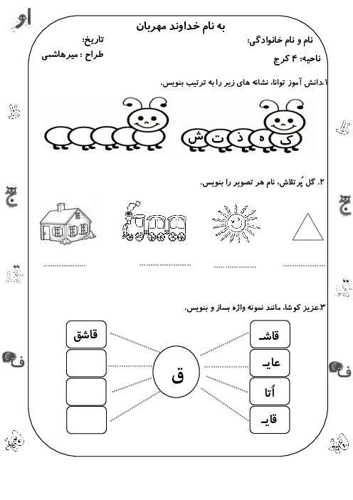 ارزشیابی ورودی به پایهی دوم دبستان نرجس | از محتوای کتاب فارسی اول ابتدائی