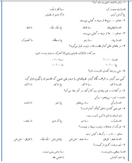 نمونه سوال امتحانی تستی درس فارسی | درس هفدهم: مثلِ دانشمندان پایه دوم ابتدایی