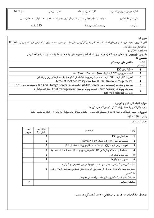 نمونه سوالات امتحان عملی نصب و نگهداری تجهیزات شبکه و سختافزار دوازدهم پودمان 4 مدیریت متمركز منابع شبكه شاخه فنی