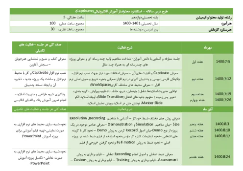 طرح درس سالانه استاندارد محتواساز آموزش الکترونیکی | نرم افزار Captivate