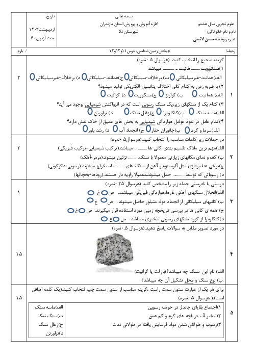 امتحان زمین شناسی علوم هشتم | فصل 11 و 12 و 13