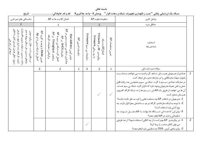 نمونه سوال امتحانی عملی نصب و نگهداری تجهیزات شبکه و سختافزار دوازدهم پودمان 2 پیکربندی شبکه بی سیم و مودم واحد 4