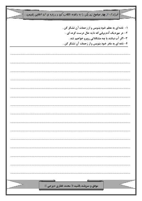 آزمون نوبت اول انشای فارسی چهارم دبستان