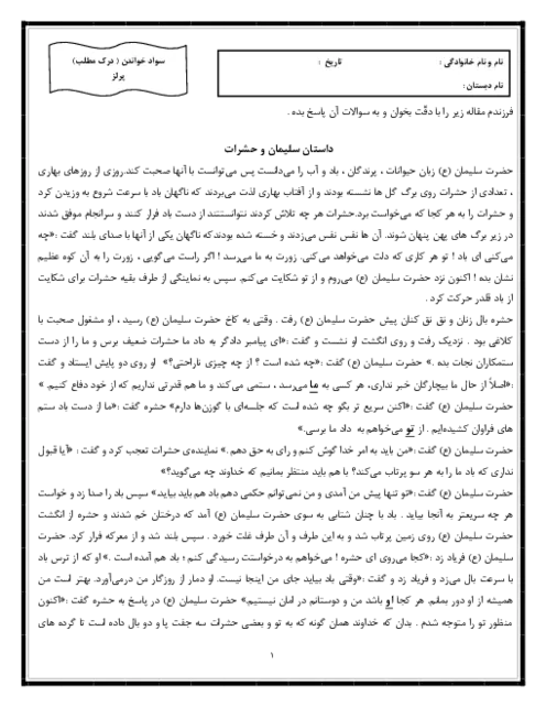 آزمون درک مطلب و سواد خواندن ( پرلز) | داستان سلیمان و حشره