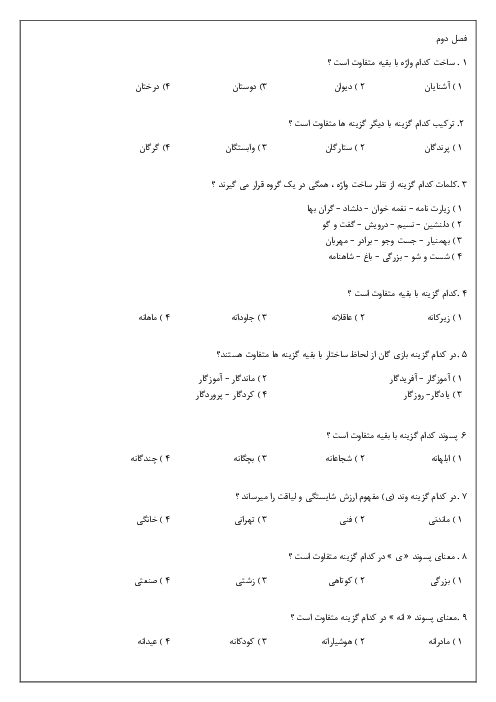 بخش اول روابط بین کلمات ،تنوع فراوان سوالات در زمینه :