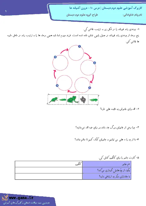 کاربرگ علوم دوم ابتدائی | درس 10 - درون آشیانه ها