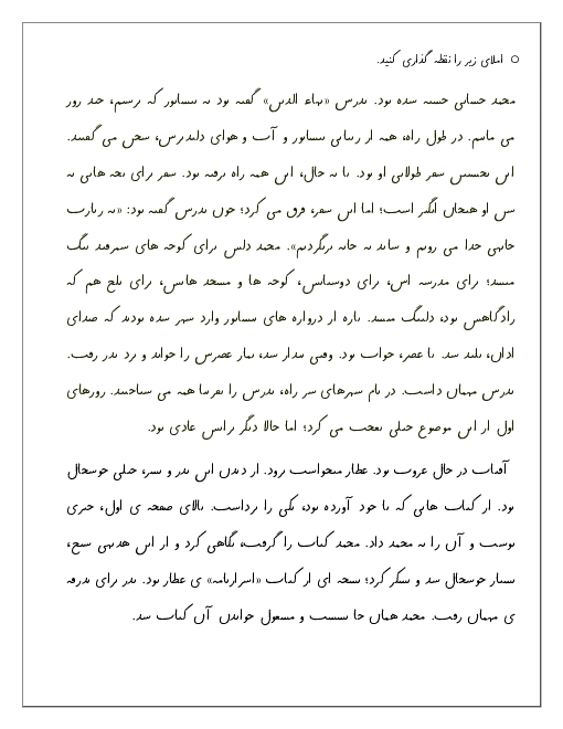 آزمون املای بدون نقطه درس 10: عطّار و جلال الدّین محمّد پایه ششم دبستان