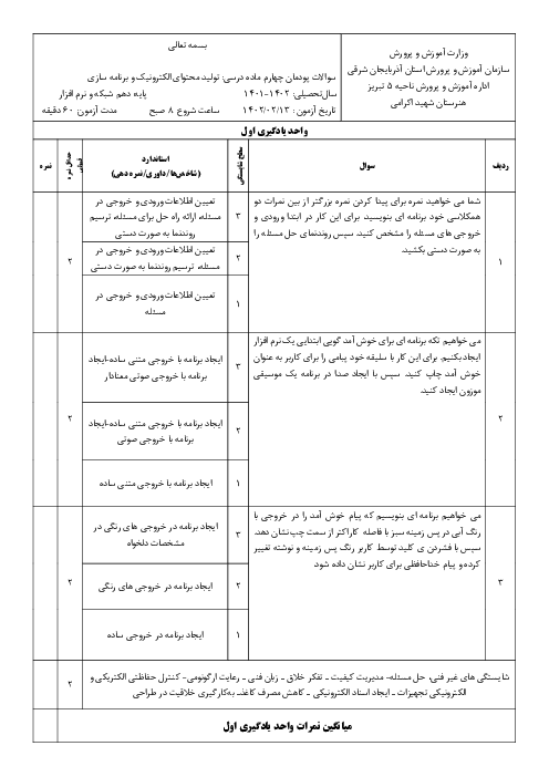 نمونه سوال امتحانی عملی تولید محتوای الکترونیک و برنامه سازی پودمان 4: حل مسایل ساده پایه دهم هنرستان