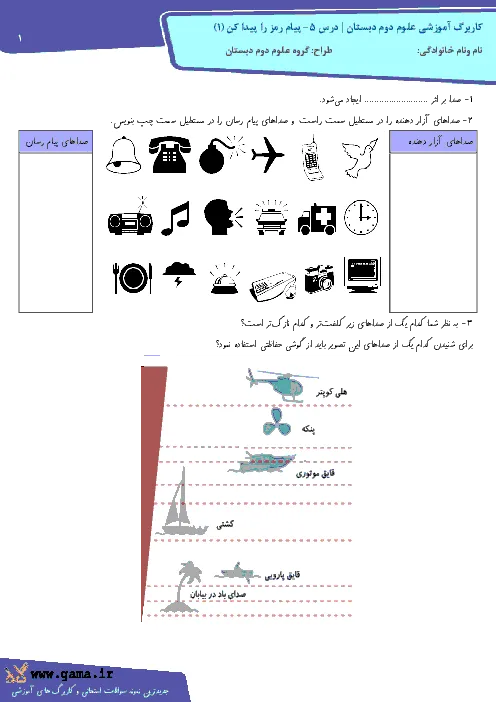 نمونه سوال امتحانی عملکردی علوم درس 5 - پیام رمز را پیدا کن (1) پایه دوم دبستان
