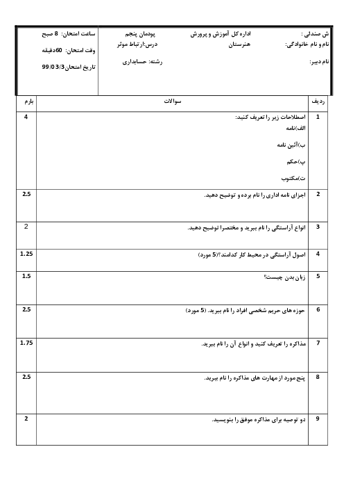 سوالات پودمان پنجم درس ارتباط موثر رشته حسابداری ( اهمیت و کارکرد زبان بدن و فنون مذاکره )