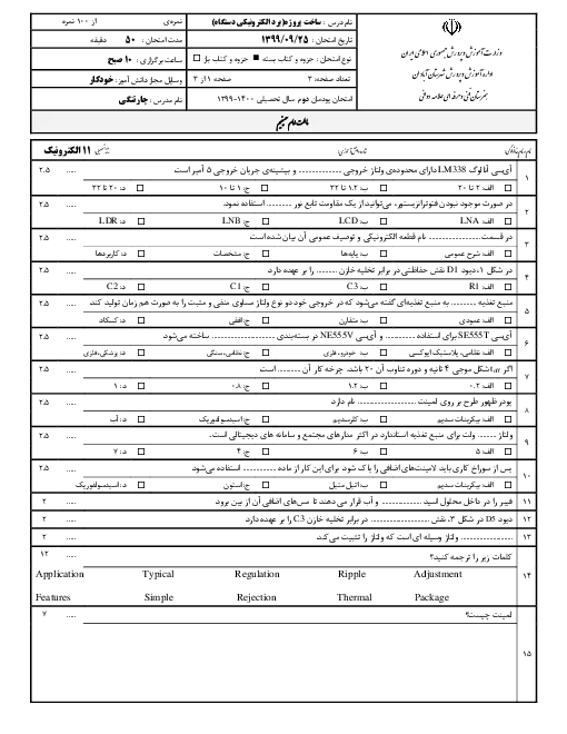 امتحان ساخت پروژه (برد الکترونیکی دستگاه) یازدهم هنرستان رشته الکترونیک | پودمان 2: طراحی مدار چاپی با نرم افزار پیشرفته