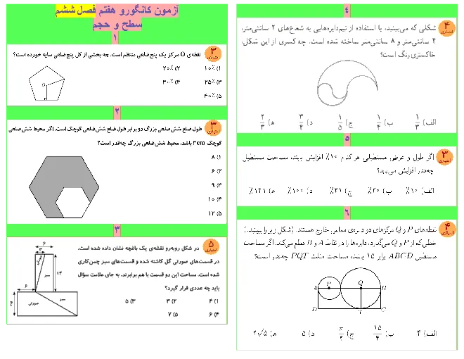 نمونه سوال امتحانی مجموعه ای ریاضیات کانگورو فصل 6: سطح و حجم پایه هفتم فصل 6: سطح و حجم