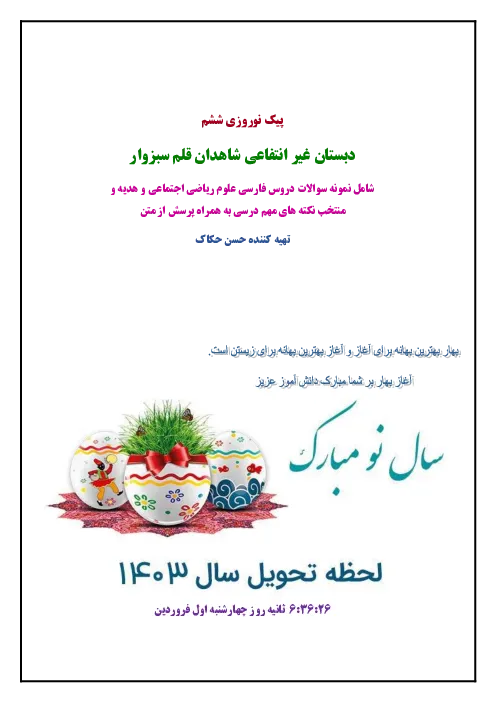 پیک نوروزی فروردین 1403 پایه ششم دبستان