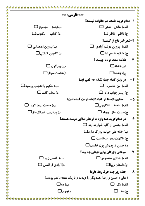 آزمون سنجش بنیه علمی پایه چهارم دبستان شهید رستمی مشهد | هفته چهارم دیماه