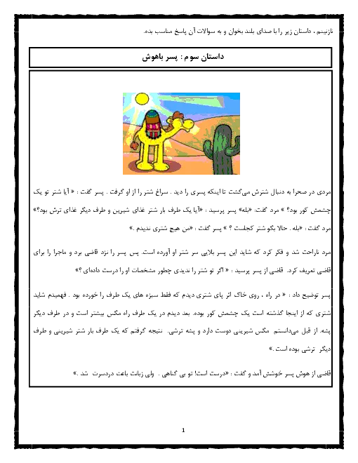 آزمون عملکردی (طرح پرلز) درک مطلب فارسی داستان پسر باهوش پایه چهارم ابتدائی