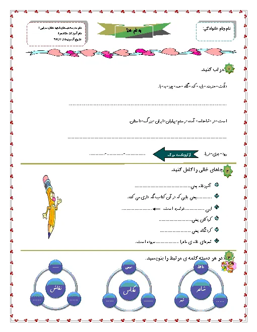 آزمون ارزشیابی مداد کاغذی فارسی درس 9 تا 13 پایه دوم دبستان