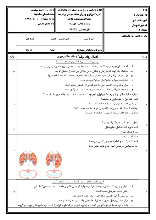 آزمون نوبت اول زیست شناسی (1) دهم دبیرستان قائم | دی 1398