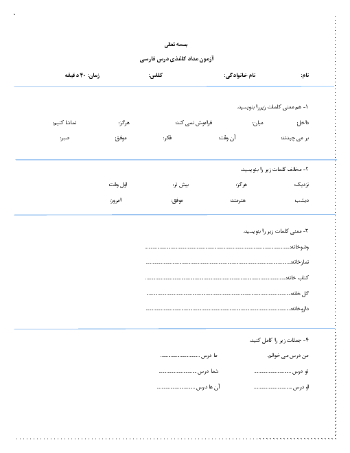 نمونه سوال امتحانی فارسی درس 9: زیارت پایه دوم دبستان