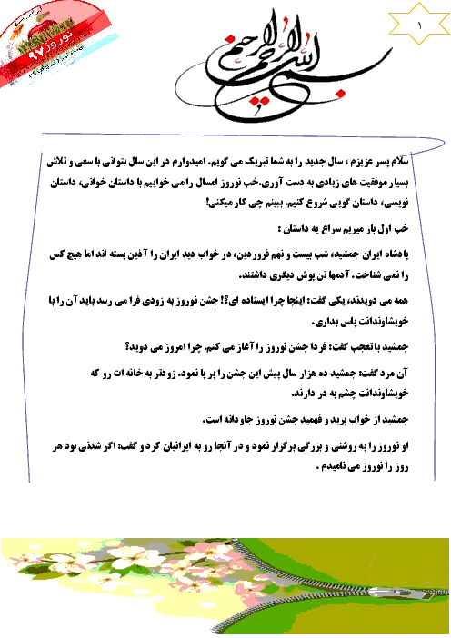 تکلیف و پیک نوروزی | فروردین 1398 پایه پنجم دبستان