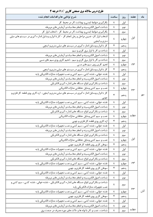 طرح درس سالانه کارور PLC درجه 2 دوازدهم رشته برق صنعتی