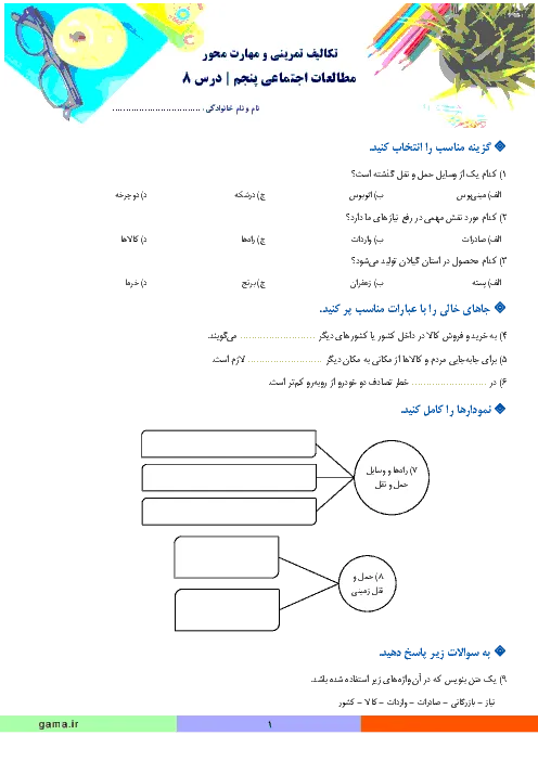 تکلیف تمرینی و مهارت محور درس های 8 تا 16 مطالعات اجتماعی پنجم ابتدائی