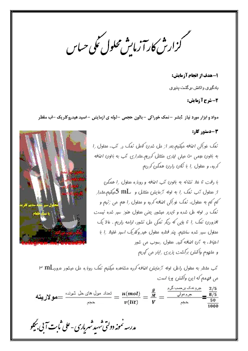 گزارش کار آزمایشگاه علوم تجربی دهم | محلول نمکی حساس